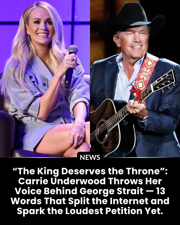 When asked about the fan-driven campaign, Carrie Underwood smiled and replied with enthusiasm, “If George Strait takes the Super Bowl stage, count me in.” That simple statement instantly sparked trending hashtags like #GeorgeStraitSuperBowl and #CarrieAndGeorge, as fans began dreaming of a classic country halftime celebration.