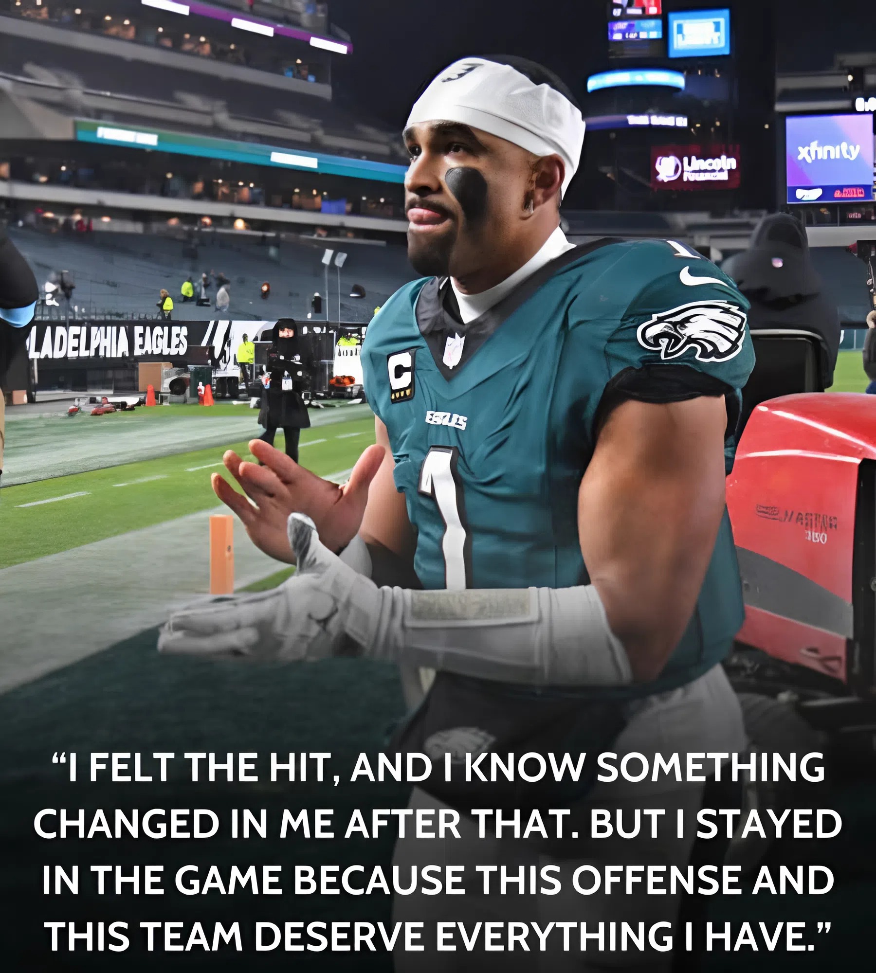 “Somehow, someway Hurts remained in the game and didn’t look like himself the rest of the way. Now I’m not going to say that Hurts definitely suffered a concussion but it was certainly a notable hit.