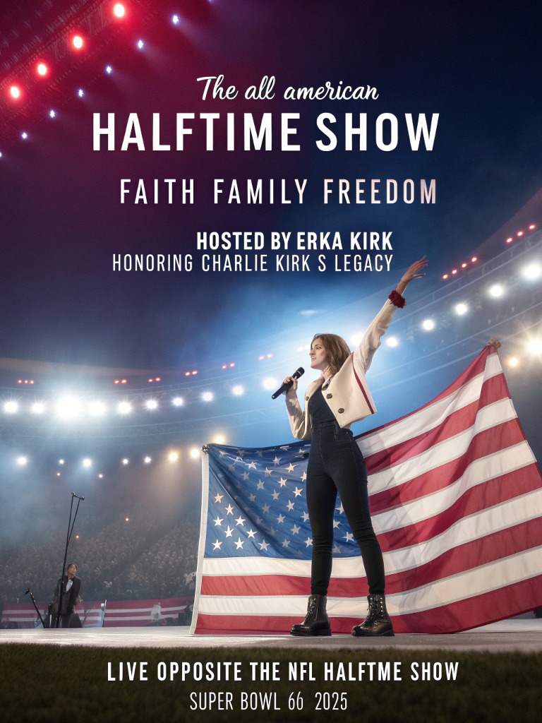 This year’s Super Bowl Halftime Show won’t just light up the stadium — it will light up hearts across America. Under the leadership of Erika Kirk, The All American Halftime Show promises to bring back something the nation has been longing for: unity, hope, and homegrown pride.