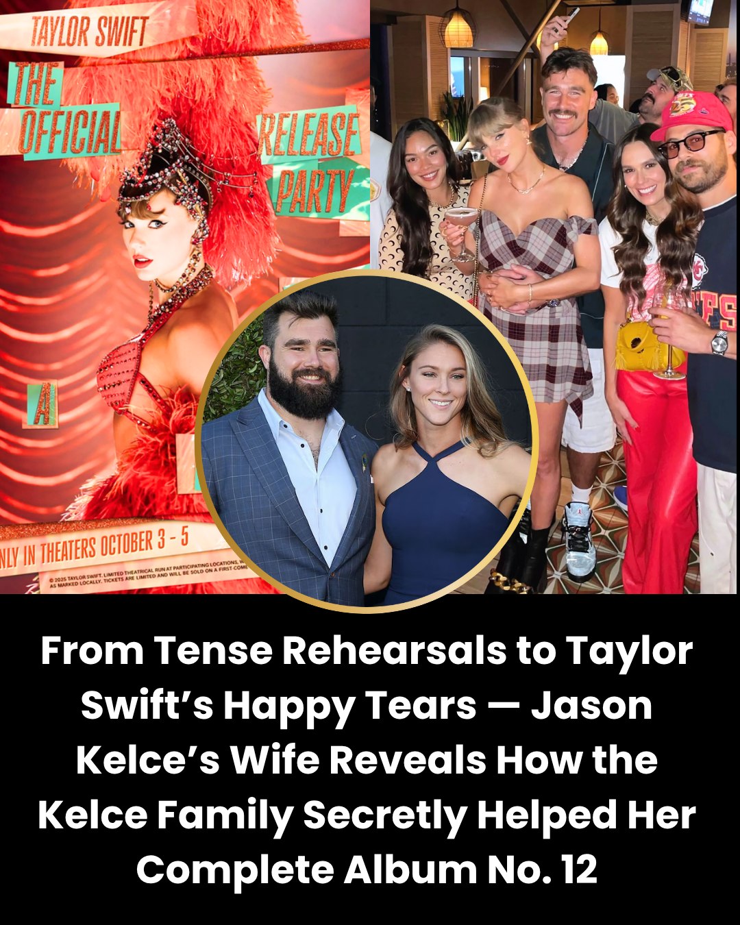 When fans think about Taylor Swift’s albums, they picture late-night writing sessions, studio magic, and her unstoppable creativity. But her 12th album carried a secret story few ever knew. According to Jason Kelce’s wife, it wasn’t just Taylor in the spotlight—it was the Kelce family standing quietly behind her, helping in ways that left Taylor herself in tears.