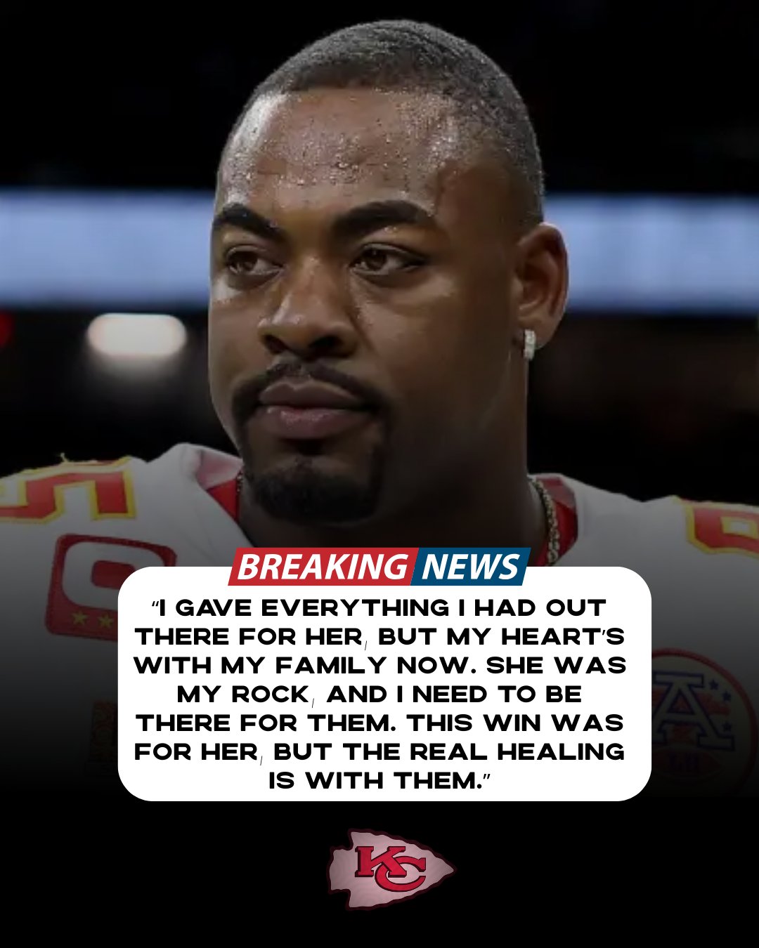 “I gave everything I had out there for her, but my heart’s with my family now,” Jones said in a brief statement before departing. “She was my rock, and I need to be there for them. This win was for her, but the real healing is with them.” The Chiefs organization arranged his swift exit, ensuring he could balance his commitment to the team with personal needs.