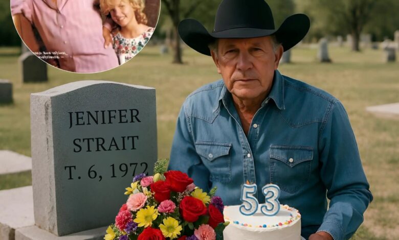 ST.IN MEMORY OF JENIFER STRAIT (1972 – 2025) – This morning, George Strait quietly visited his daughter’s resting place. No cameras. No press. Just a father, a few flowers, and memories that time cannot erase.