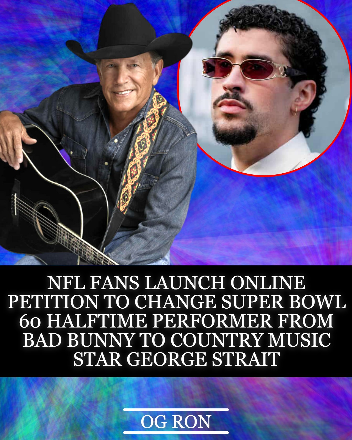 The petition has been launched, calling on the NFL to replace Bad Bunny with country music legend George Strait.
