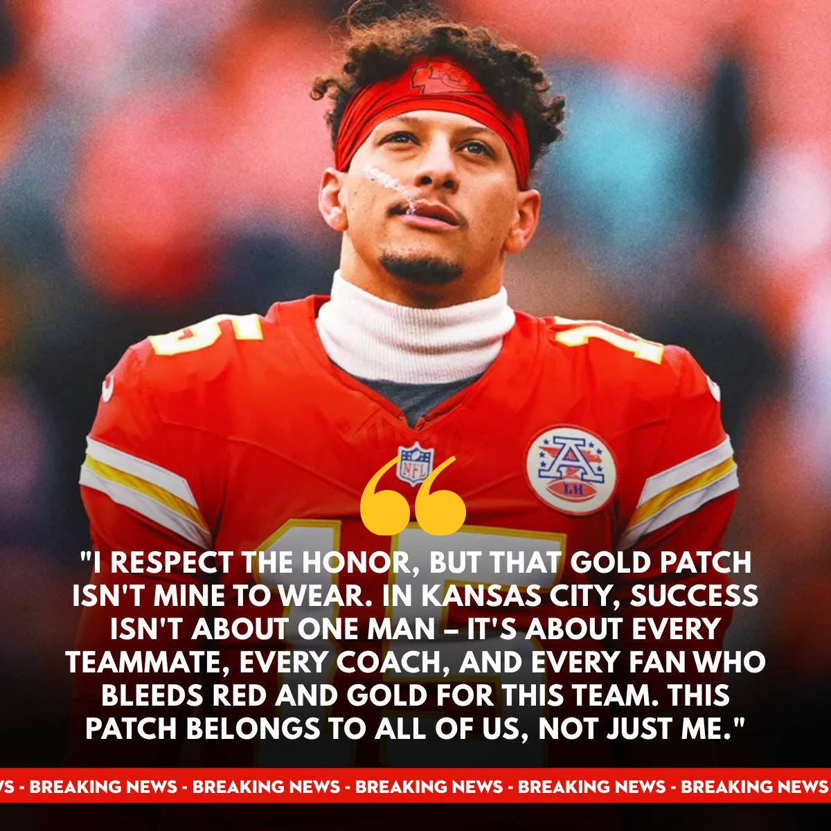 “UNREAL HUMILITY OR GENIUS MOVE? 🤔 Patrick Mahomes REFUSES the Golden Patch — Saying ‘Success Belongs to the Chiefs, Not Me.’ Fans Are Divided: Is This True Leadership… or a Strategic Play for Public Praise? The Internet Can’t Stop Arguing 👇🔥”