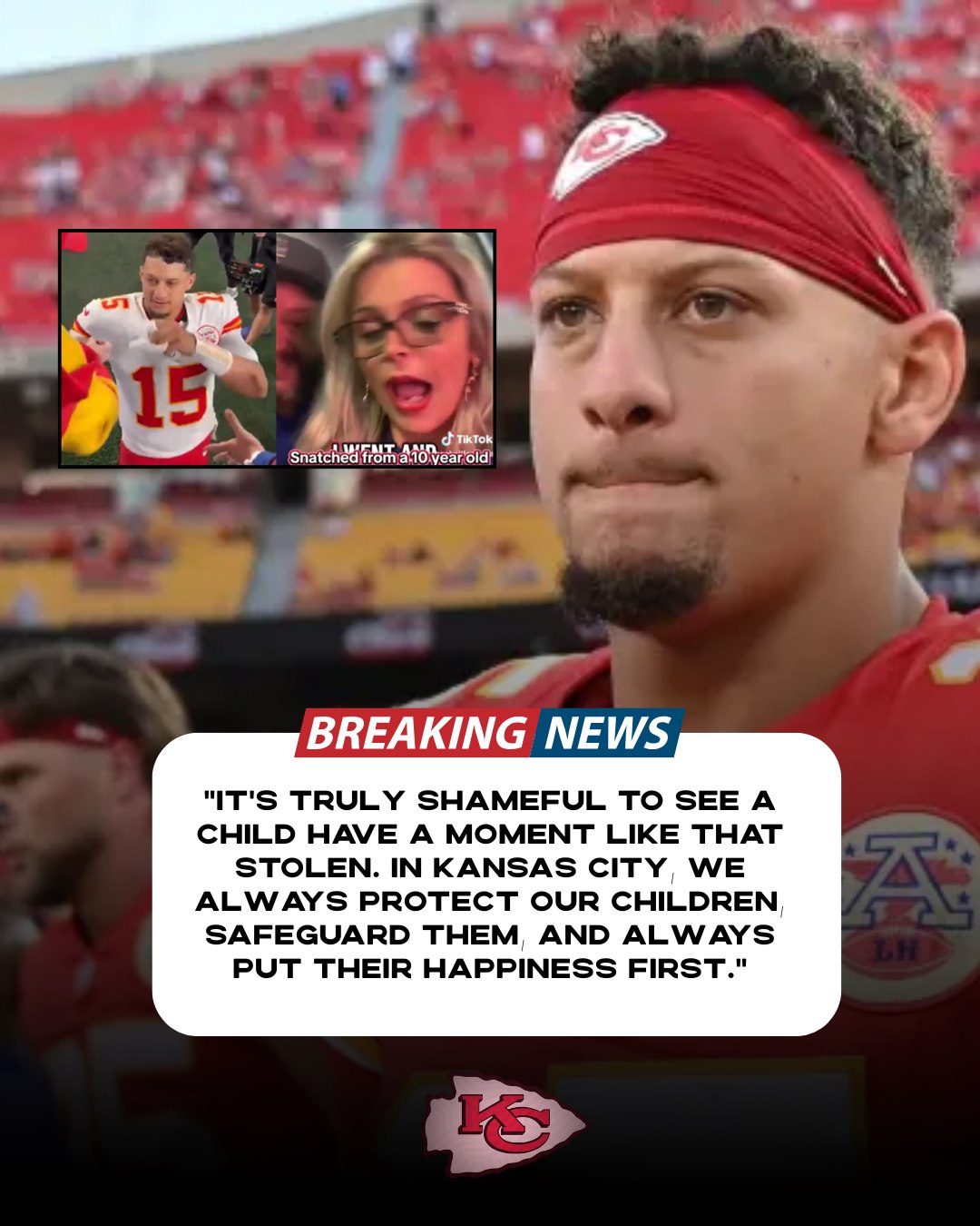 In a statement released Monday, Mahomes expressed his dismay: “I can’t control what people do in the stands, but I’d like to think our game is about respect. It’s truly shameful to see something snatched away right there in the stadium, especially from a child.” His words reflect a deep commitment to the spirit of football and concern for the young fan’s experience.