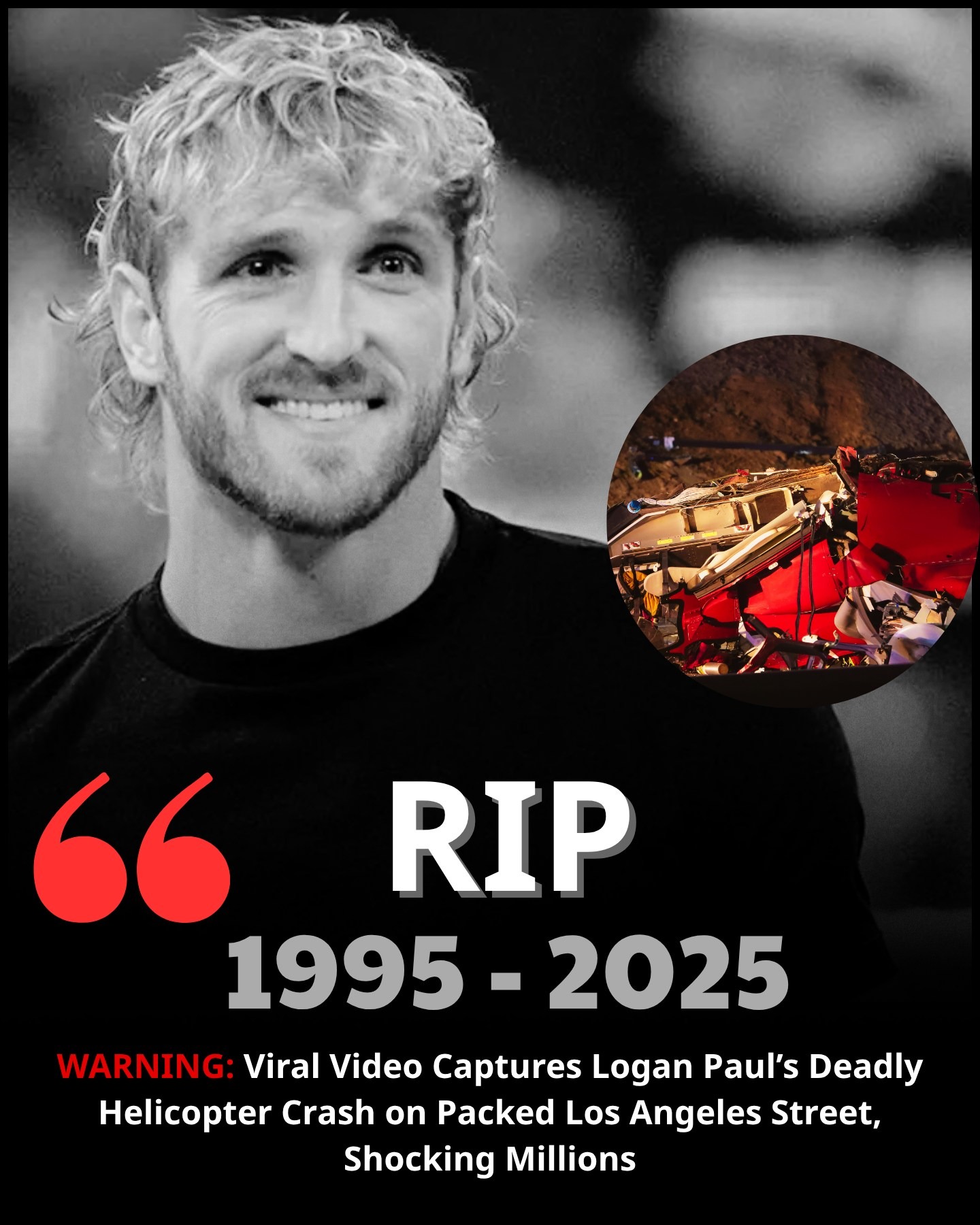 Los Angeles, CA – October 12, 2025 – A heart-wrenching tragedy has left the digital world in mourning after YouTube icon Logan Paul was killed in a catastrophic helicopter crash on a bustling Los Angeles street. The horrifying moment, captured in a viral live video by a bystander, shows the aircraft plummeting to the ground, injuring multiple people and leaving fans across the globe in utter disbelief. Authorities are racing to uncover the cause of the crash as tributes pour in.