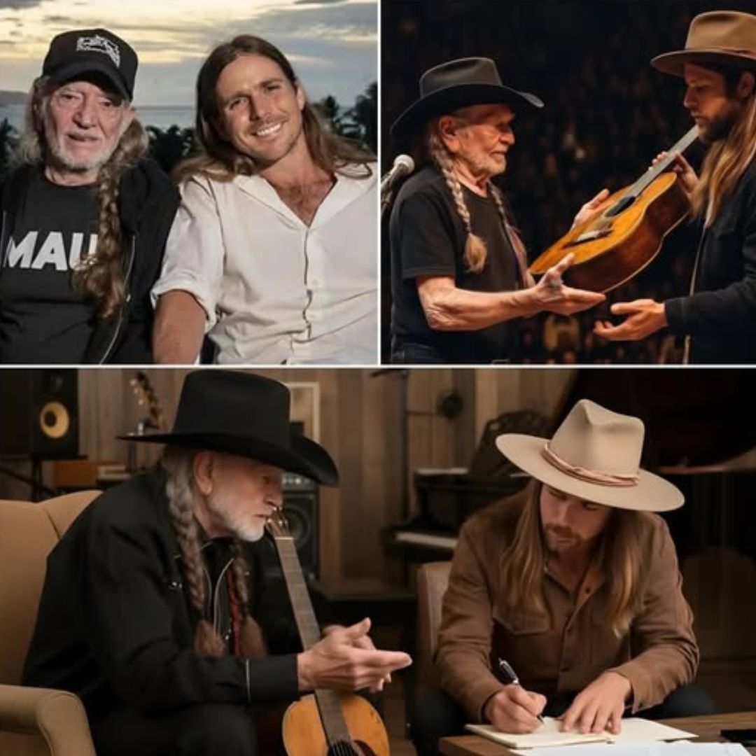 ST.THE PASSING OF THE TORCH: In a moment that will echo through music history, Willie Nelson’s legendary career came to a quiet, sacred close not on a stage, but inside an Austin studio. After recording his final track, he rested his hand on Trigger, the guitar that held his life’s stories, and turned to his son Lukas. With a whisper that carried the weight of a lifetime, he said, “It’s your turn now, Lukas. The road’s still long — but the song’s still young.” He then placed the iconic guitar into his speechless son’s hands, gave a small salute with his hat, and walked away in silence. The soft creak of the studio door closing behind him marked the end of an era, a final, humble act of passing a legacy from a father to his son.