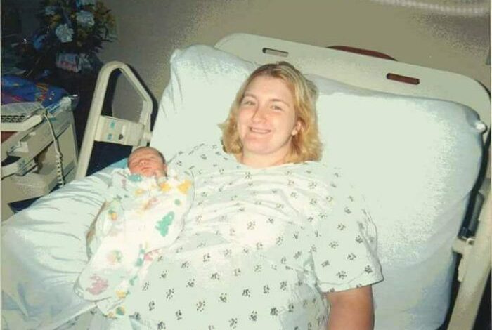 Chass Barker holds newborn Cameron just months after she walked out of her abortion appointment.