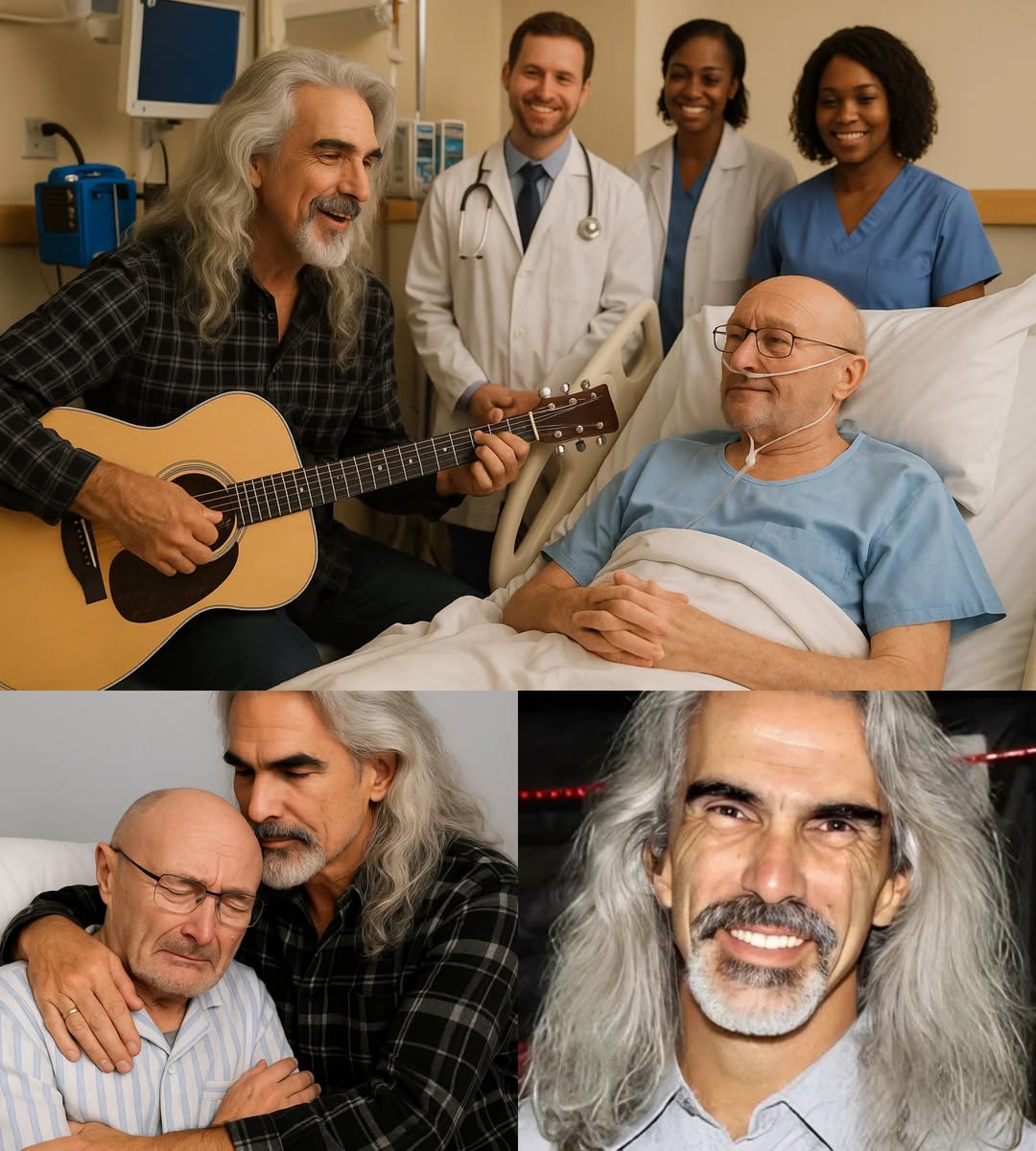 The melody, familiar yet intimate, floated through the room. Each note carried more than music—it carried decades of friendship, shared triumphs, and unspoken devotion. Nurses, who had quietly gathered at the doorway, paused, sensing that this was not a routine visit. Some wiped tears from their eyes as they watched the scene unfold, captivated by a performance more profound than any staged concert could offer. One tear traced slowly down Phil’s cheek, a silent witness to a lifetime of memories shared between two men whose music had touched millions around the world.