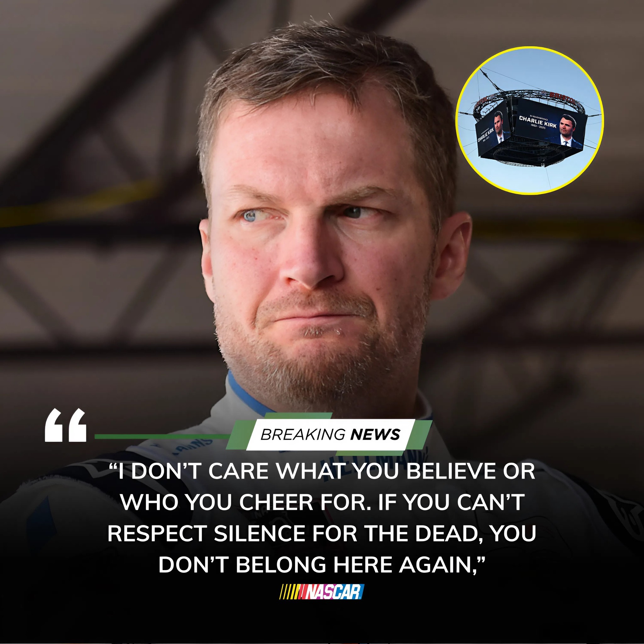 “I don’t care what you believe or who you cheer for. If you can’t respect silence for the dead, you don’t belong here again,” Earnhardt Jr. declared.