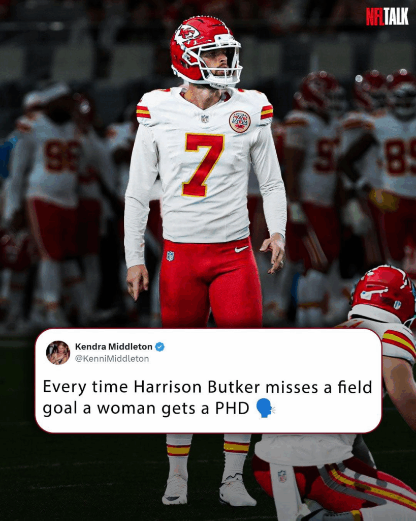 The headline “Butker Shocks: Losing a Field Goal Every Day, When a Woman Gets a PhD, What Do Straight Fans Want?” was sensational, contrasting his continued athletic failure with a woman’s academic success, and pointing to the dissatisfaction of a group of male fans with the current situation. This awkward comparison is immediately controversial, but it does provide a nuanced picture of the personal pressures, expectations, and endurance of professional players.