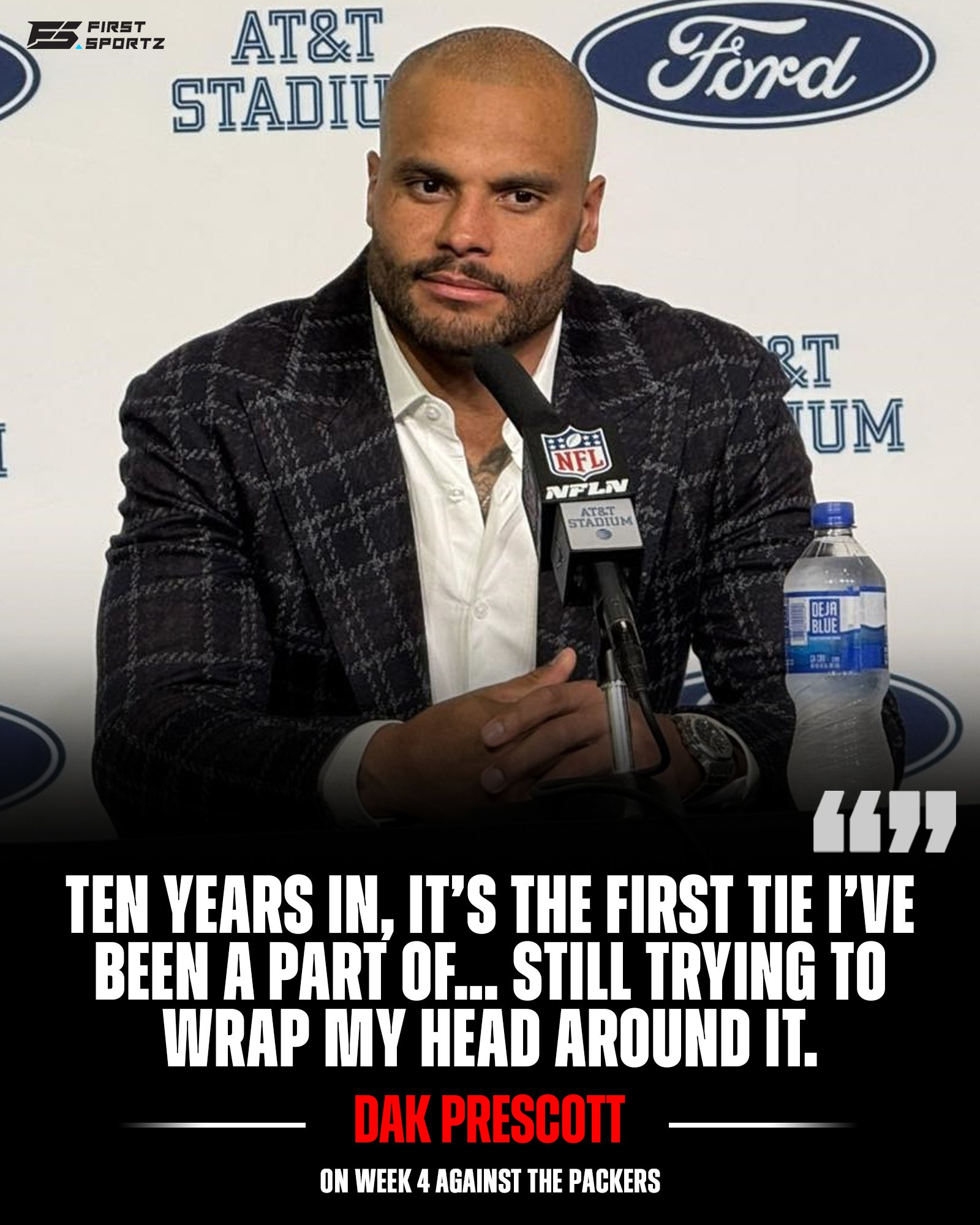 Dallas Cowboys captain Dak Prescott had an unforgettable game against the Green Bay Packers in a thrilling overtime game that ended in a 40-40 tie — the first tie in his 10-year career. On the field, Dak put in a stellar performance, totaling 319 passing yards, three touchdown passes, and a scoring run, demonstrating his finesse and determination.