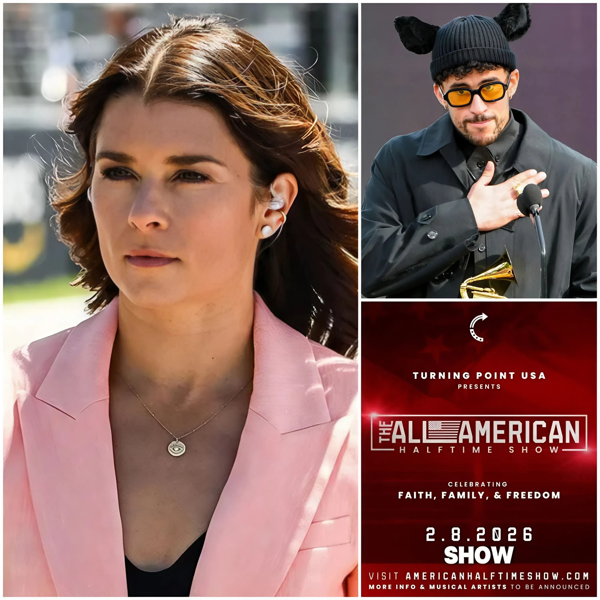 Danica Patrick’s reputation extends beyond her racing achievements and into the social and political arena, as she pledged to donate $7 million to support Turning Point USA in organizing the “All-American Halftime Show” – an alternative event focused on faith and patriotism, to directly compete with Bad Bunny’s official performance at the 2026 Super Bowl.