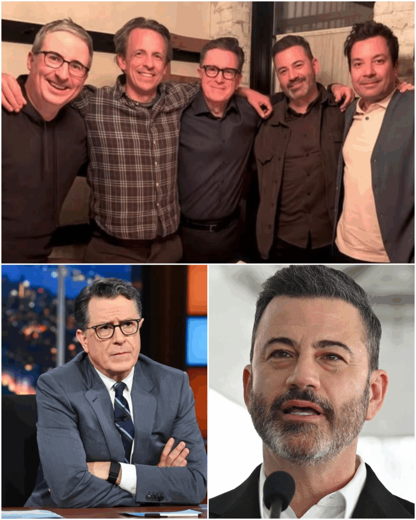 xt Imagine the shock: five late-night titans, once rivals locked in ratings battles, suddenly walking onto the same stage — not as competitors, but as allies. Stephen Colbert, Jimmy Fallon, Seth Meyers, John Oliver, and the recently silenced Jimmy Kimmel have done the unthinkable. They’ve merged their comedic firepower into a single, unprecedented force — a project described by insiders as “like five comets colliding to form a new galaxy.” This isn’t just another program. It’s a declaration of war on the old television order, a bold experiment so seismic that executives are whispering in panic behind closed doors. Can the networks survive when their biggest stars rewrite the rules together? Or are we about to witness the collapse of a media empire live, before our eyes? The answers are as explosive as the alliance itself. See full details below 👇